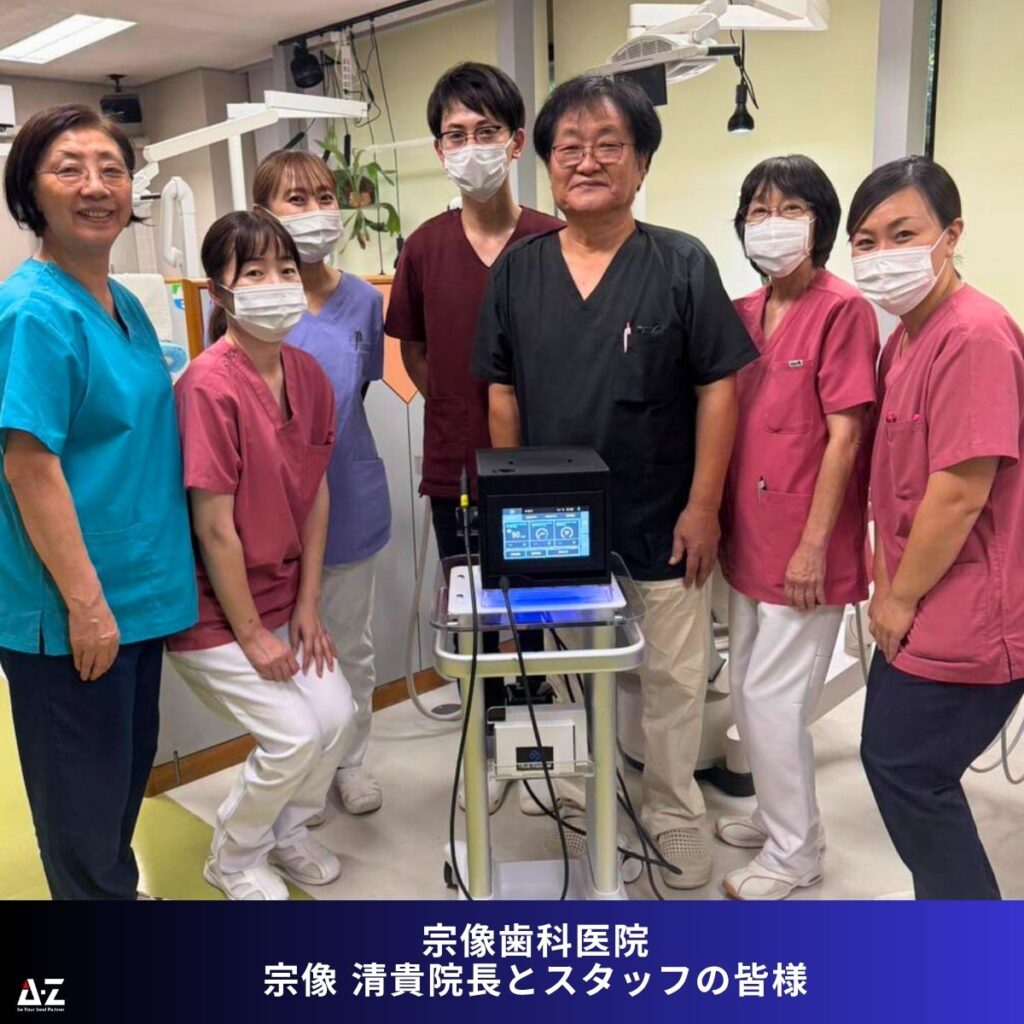 宗像院長に株式会社エーゼット主催のブルーラジカルセミナーにご参加いただき、世界初の歯周病治療器「ブルーラジカル P-01」および患者行動変容アプリ「ペリミル」の到着を心待ちにして下さっておりました。