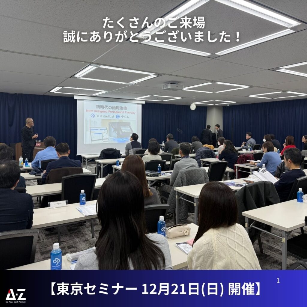 2025年12月21日(日)、東京で世界初の歯周病治療器「ブルーラジカル P-01」および患者行動変容支援アプリ「ペリミル」に関するセミナーを開催いたしました。